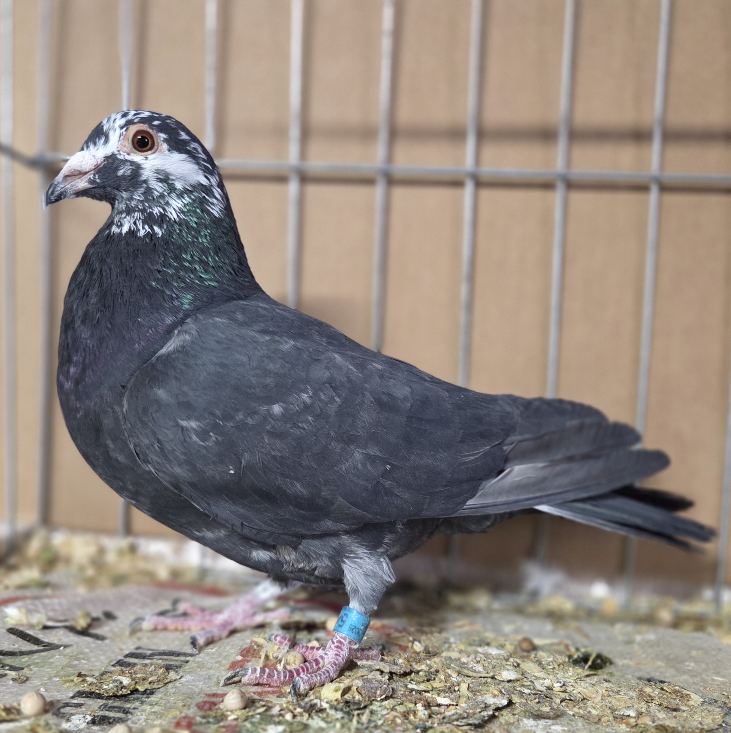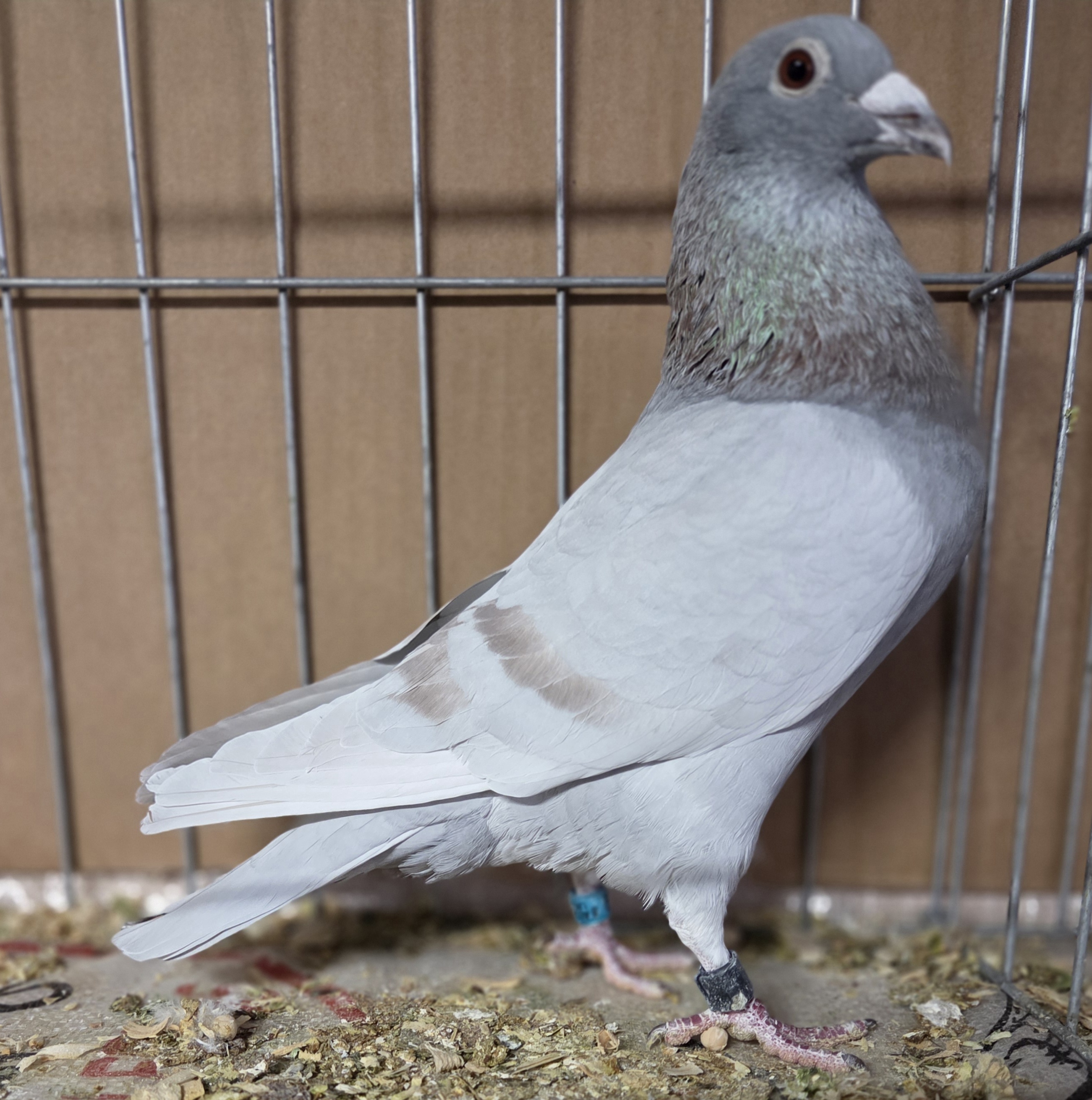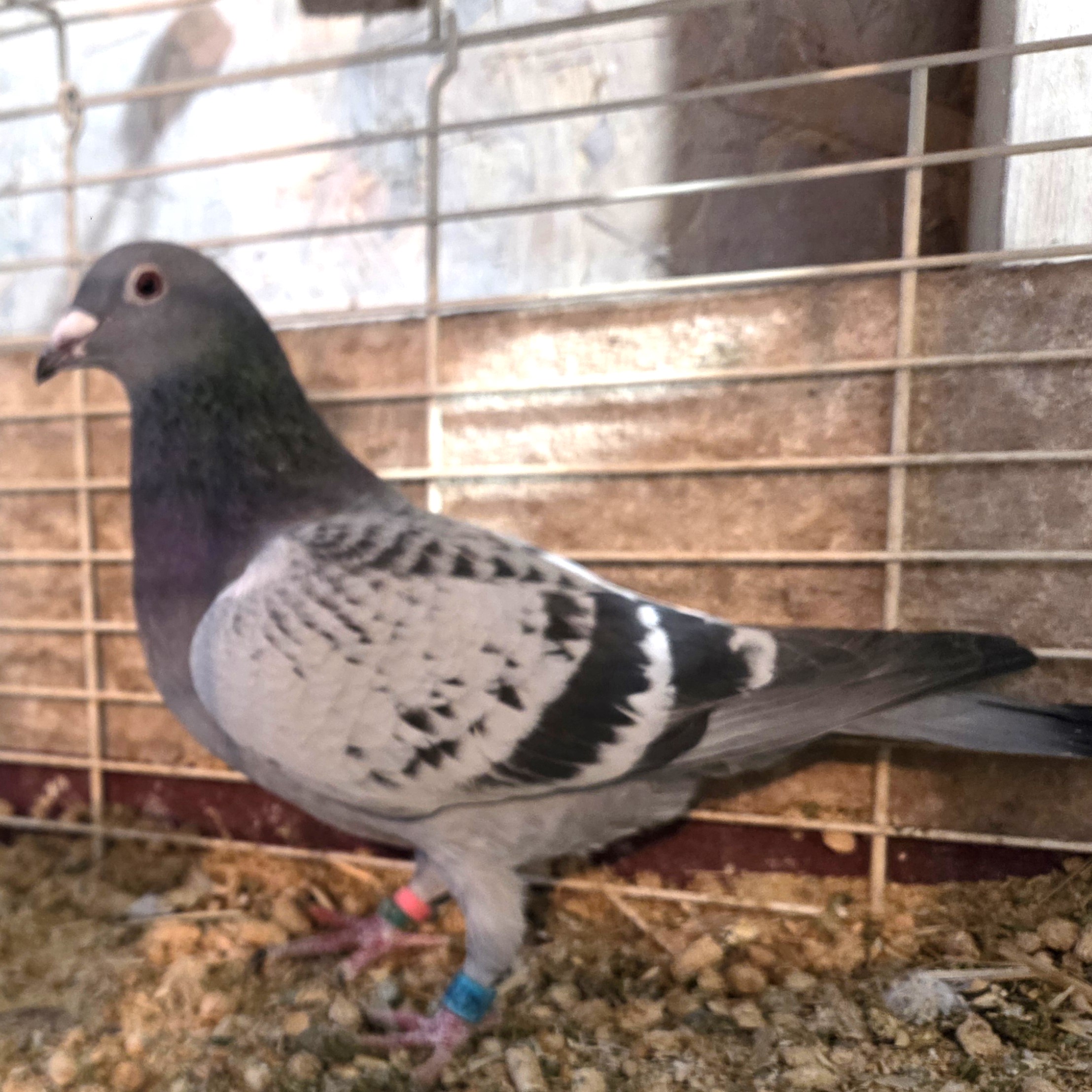 | 6. | May hatch 2025 blue bar cock no. 5420, carries the gene for barless. Sire is 9436-19, a barless blue that flew 5 races out to 120 miles prior to being moved to the stock loft and also carrying the gene for recessive opal. So there is a 50% chance 5420 will also carrie that opal gene. Dam is a blue check hen I obtained from the dispersal sale of the loft of the late Paul Anderson (PNA Loft of Southern California). Paul was known as a very successful flyer in both local and one loft races. Price reduced: $50. | ![]() |