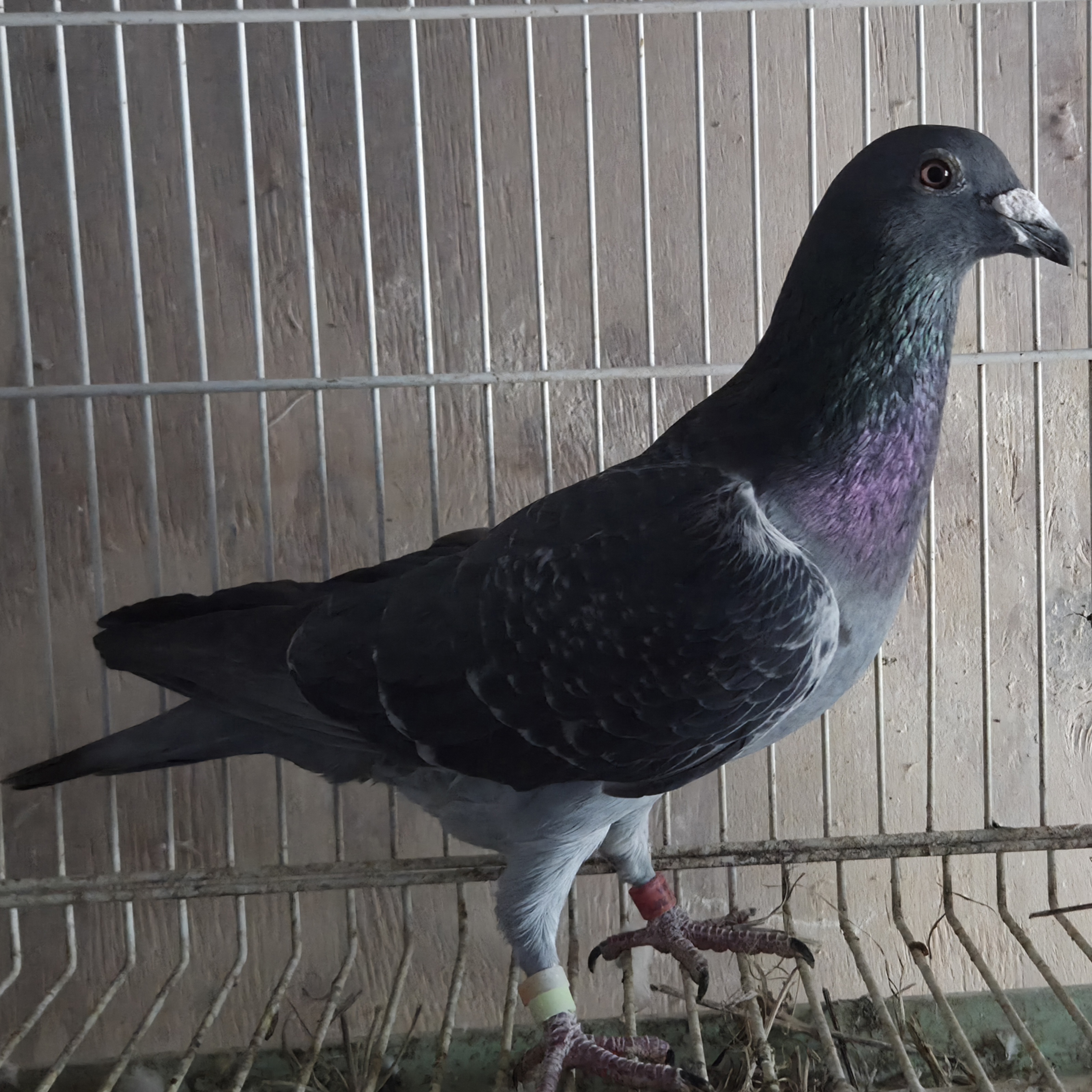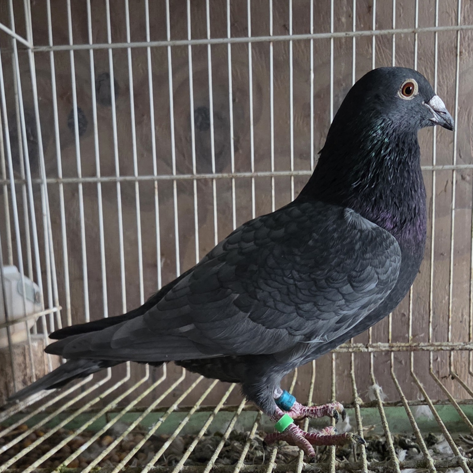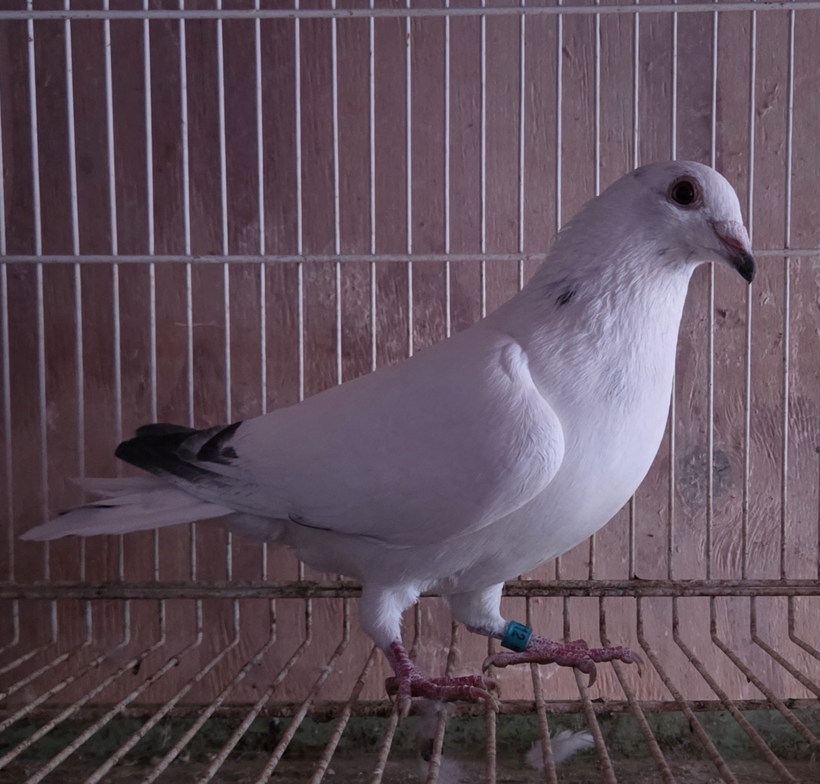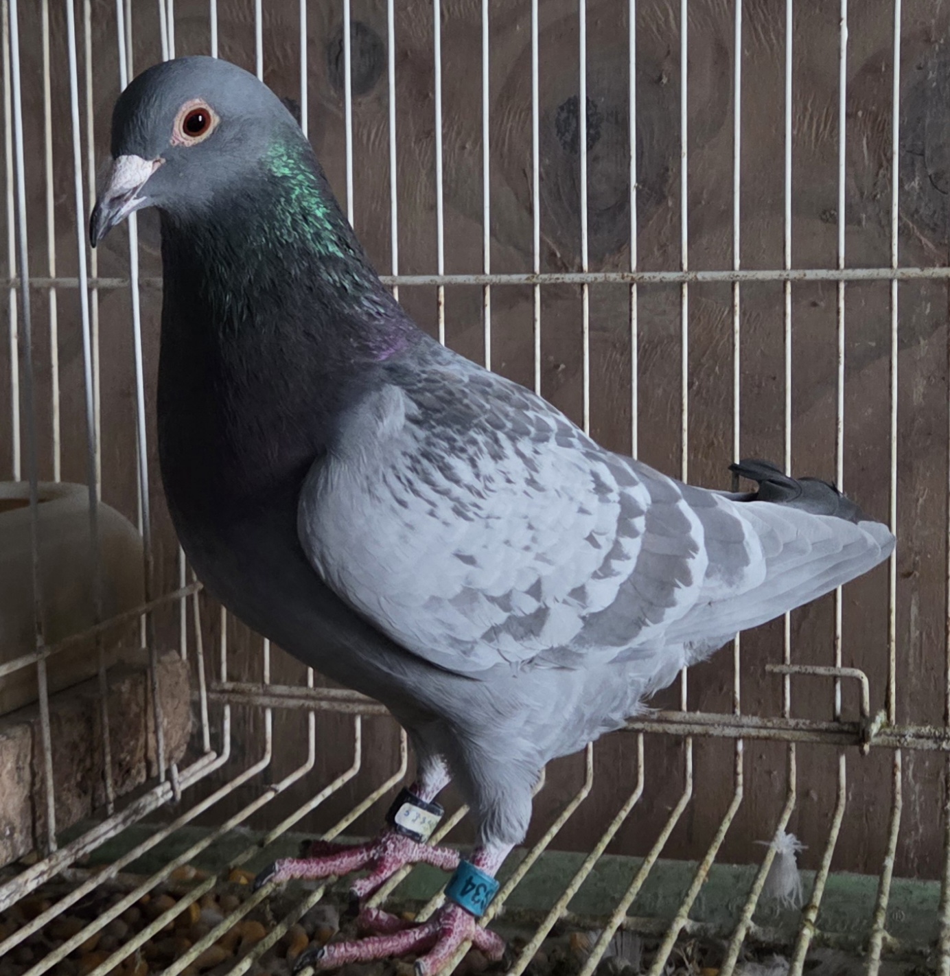 | 6. | May hatch 2025 blue bar cock no. 5420, carries the gene for barless. Sire is 9436-19, a barless blue that flew 5 races out to 120 miles prior to being moved to the stock loft and also carrying the gene for recessive opal. So there is a 50% chance 5420 will also carrie that opal gene. Dam is a blue check hen I obtained from the dispersal sale of the loft of the late Paul Anderson (PNA Loft of Southern California). Paul was known as a very successful flyer in both local and one loft races. Price reduced: $50. | ![]() |