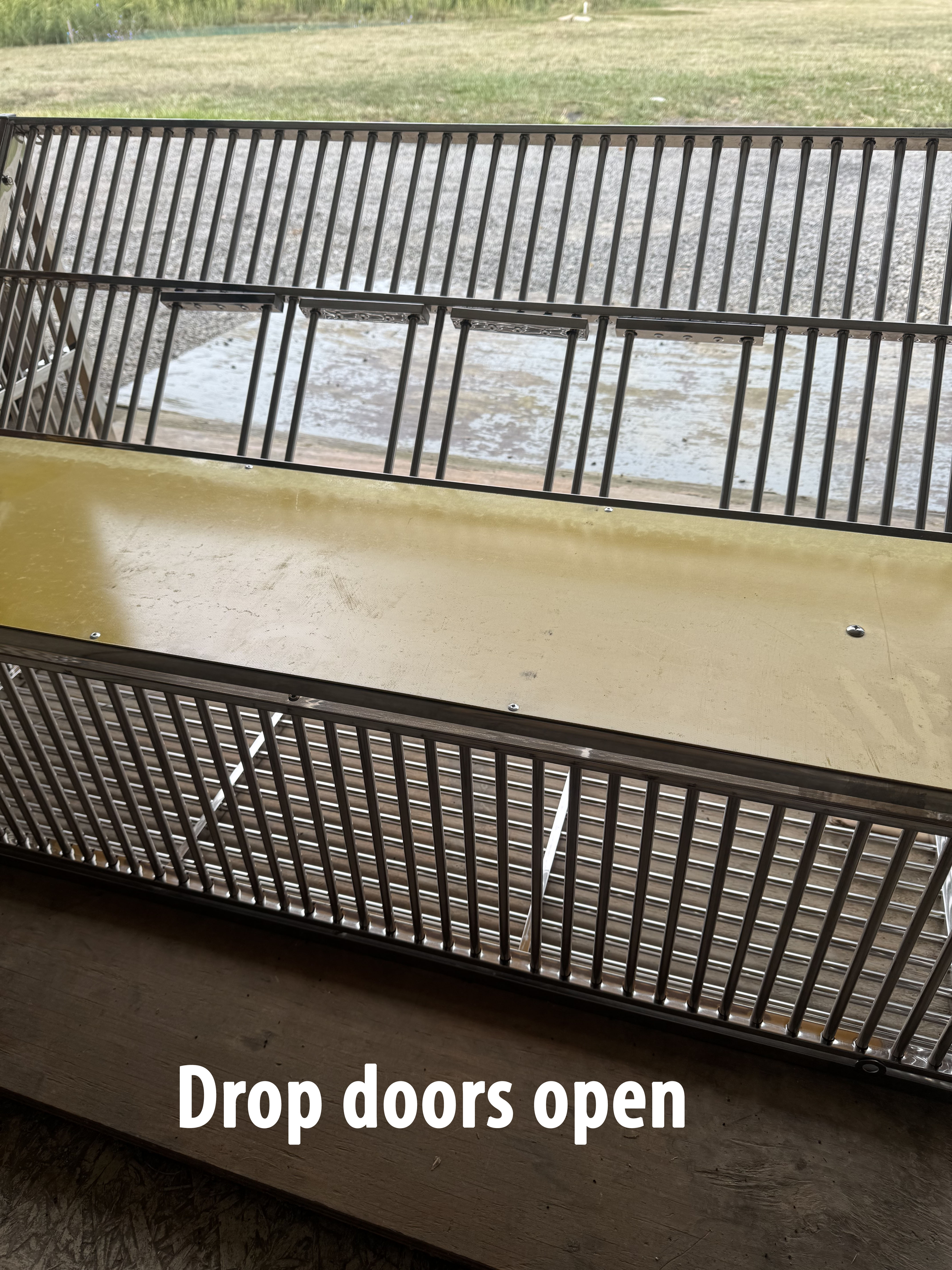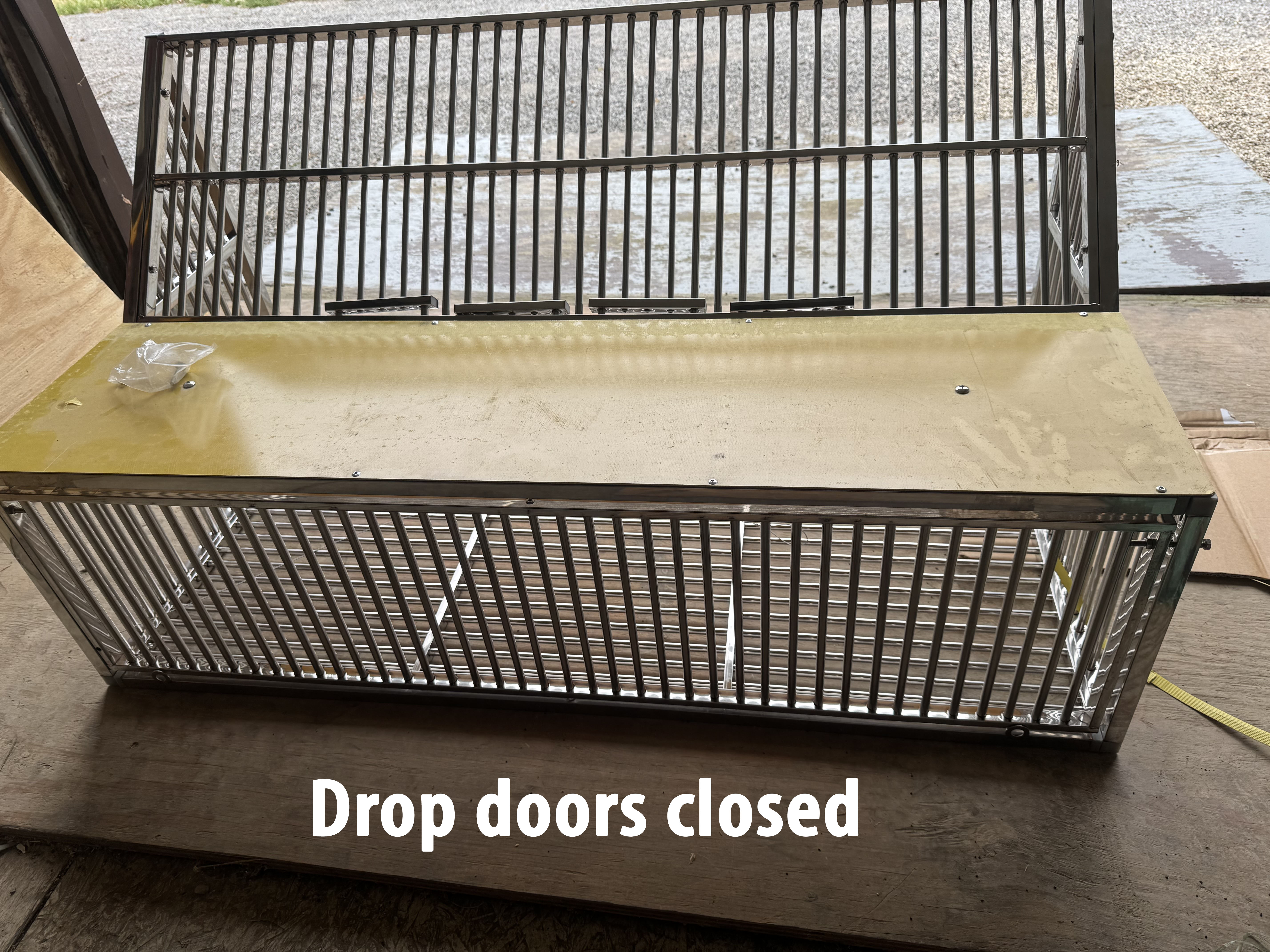 pen). This particular type of trapping is one of the most popular. It comes not assembled. It is a great way to settle your young birds, yet keep them protected. Four drop down spots can be closed by hand to protect the birds. When you’re ready to let the birds out you pull the cord to swing open the door. Don’t pay $600 or more for a quality sputnik when we can get you one for a lot less. Dimension roughly 47 x 23 x 25. (Click on each photo to expand.) Made from quality materials. Some assembly required. Nuts and bolts only. Usually takes about 25 mins. Very well made! $299 plus shipping. Email us at 5307wolfe@gmail.com and put "sputnik" in the subject line to request additional informal information.