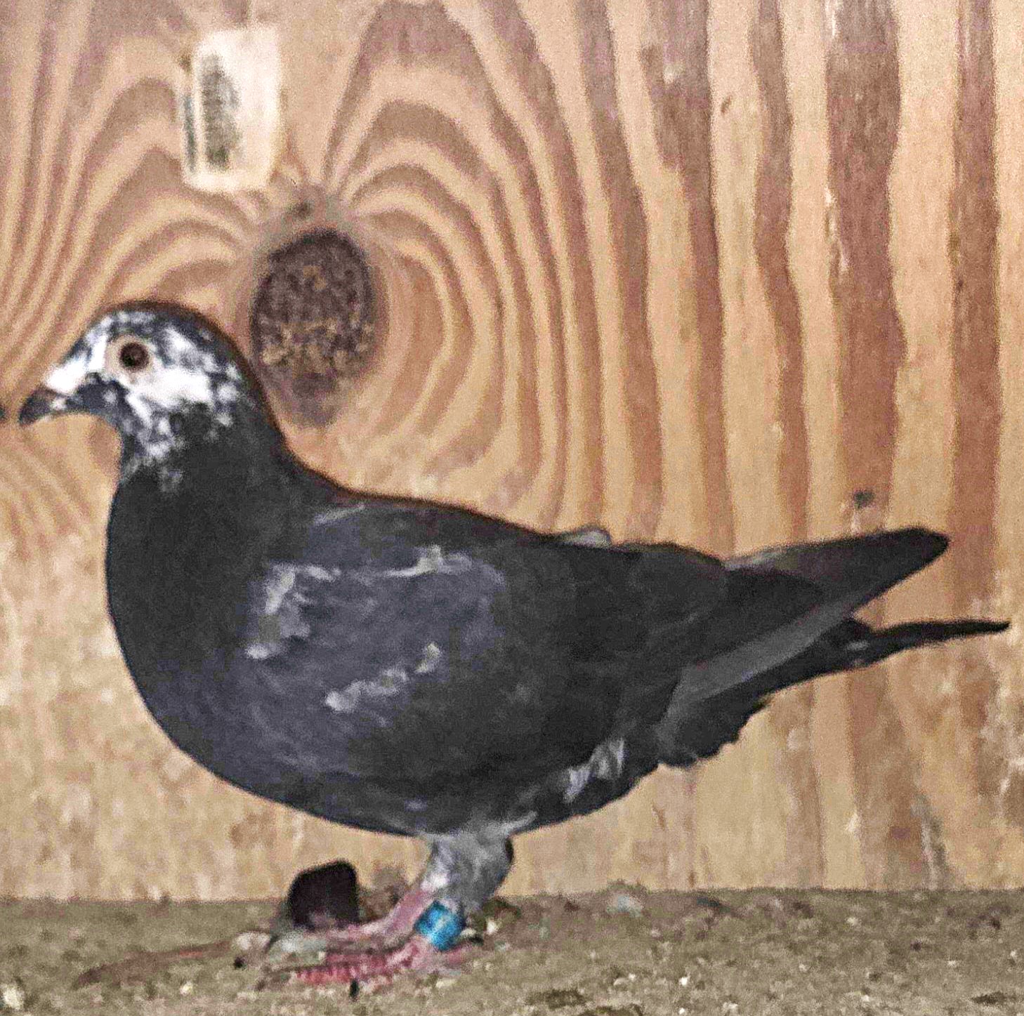 6. | 2025 blue check no. 5470 , May hatch. Both parents unflown but down from flying stock. Sire has a 500-mile bird and a 150-mile race winner behind him. Dam is 3/4 Evans Gaby VandenAbeele and 1/4 Black Widow. 5470 appears to be a hen but is a bit on the large side so could also be a cock, so I cannot guarantee sex. Dam is a recessive opal from Kastle Loft in Lexington, KY, a well-known loft here in the Midwest.Full pedigree. Price: $50 |